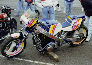 While i was digging around in my shed yesterday looking for junk, er classic custom parts, for my sale (Starts tomorrow by the way !) i uncovered my old Ultimate Streetbike jacket. A quick root through my photos turned up these taken at York Raceway probably in '89, top and bottom are the Spondons of Bill Hunter and Steve Burns.